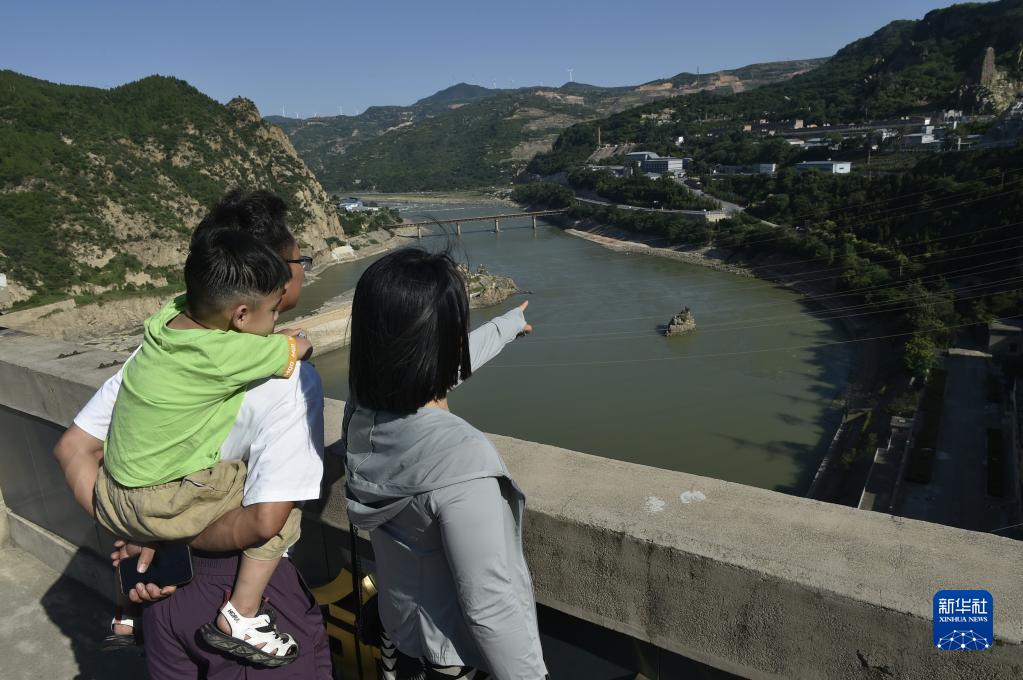 6月23日,游人在黃河三門峽大壩風景區內游覽。