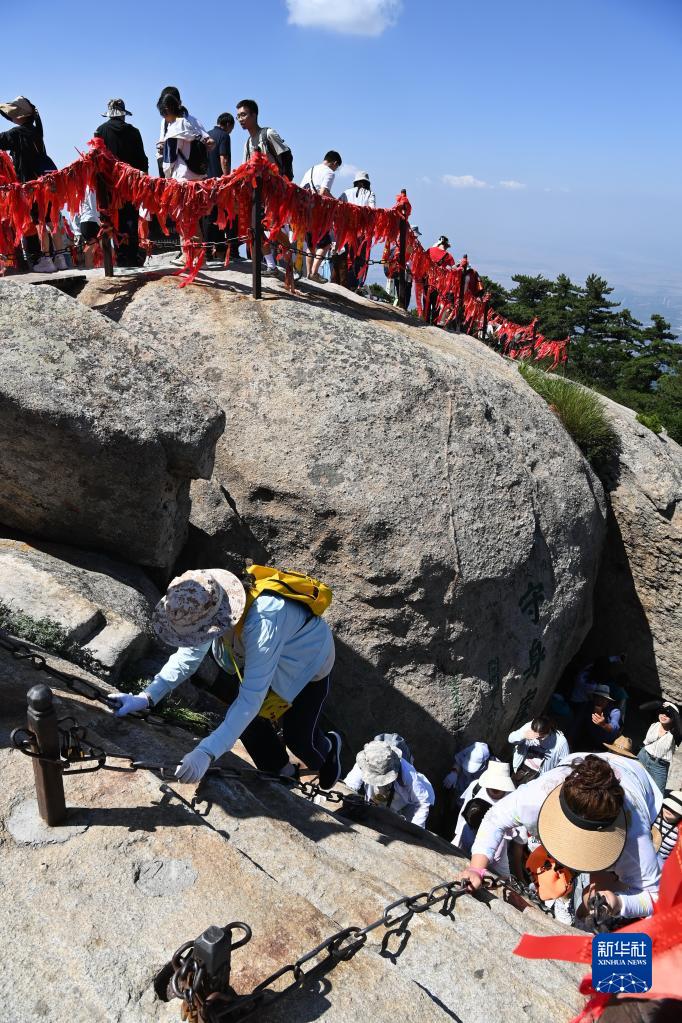 6月23日是端午小長假的第二天,在西岳華山,游客在工作人員的引導下有序登山,領略“奇險天下第一山”風光。