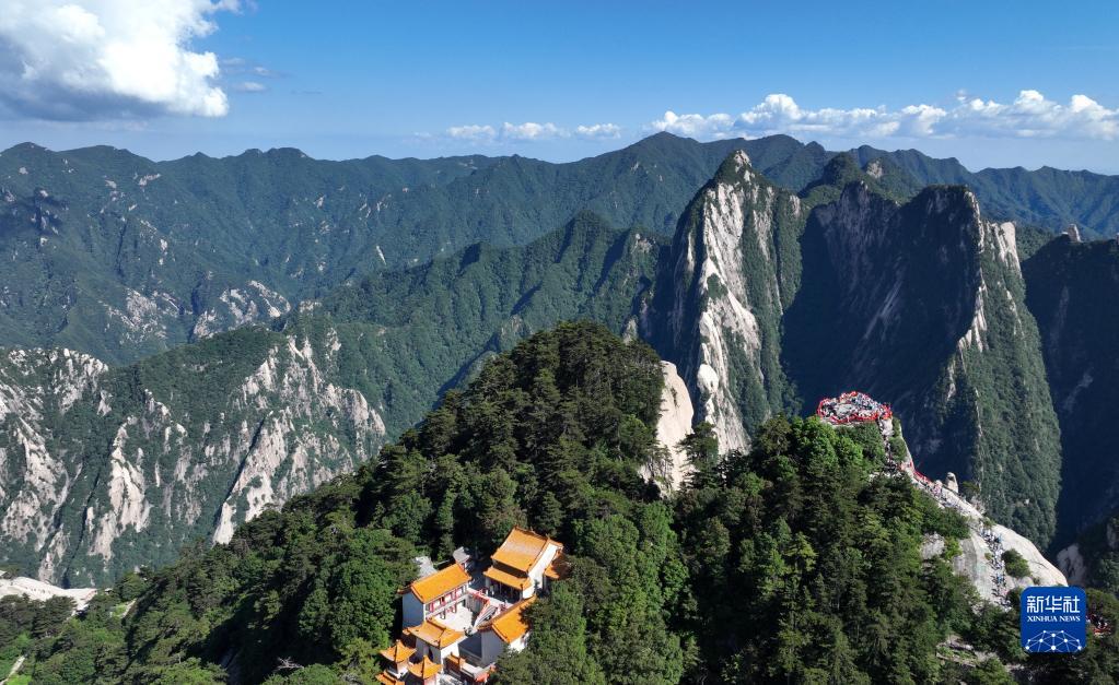 6月23日,游客在華山南峰游覽(無人機照片)。