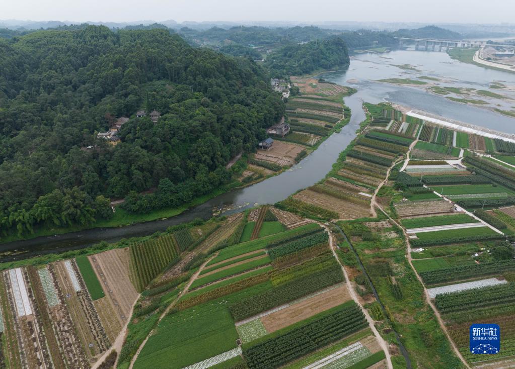 東風堰出水口尾水流入青衣江(6月23日攝,無人機照片)。