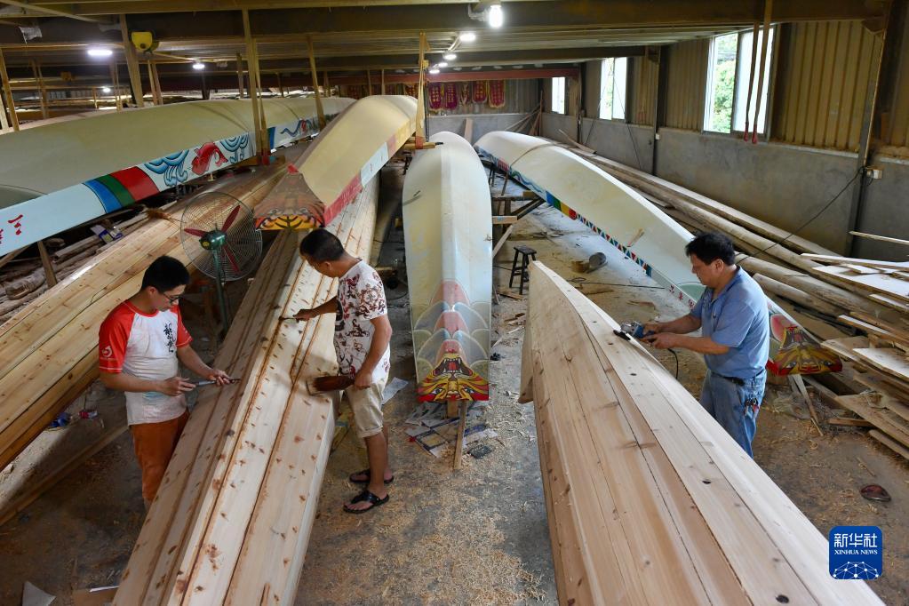 匠人在福州市閩侯縣方莊村制造龍舟(2023年6月12日攝)。