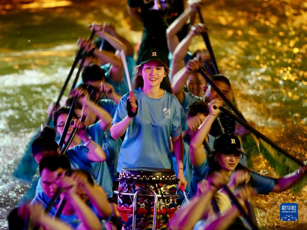 人們在福州市長樂區三溪村穿村而過的小溪中劃龍舟(2023年6月20日攝)。