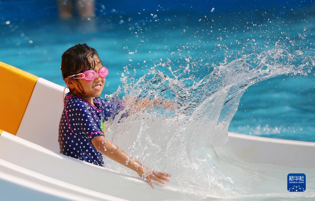 6月23日,小朋友在山東省滕州市一家水上樂園里戲水玩耍。