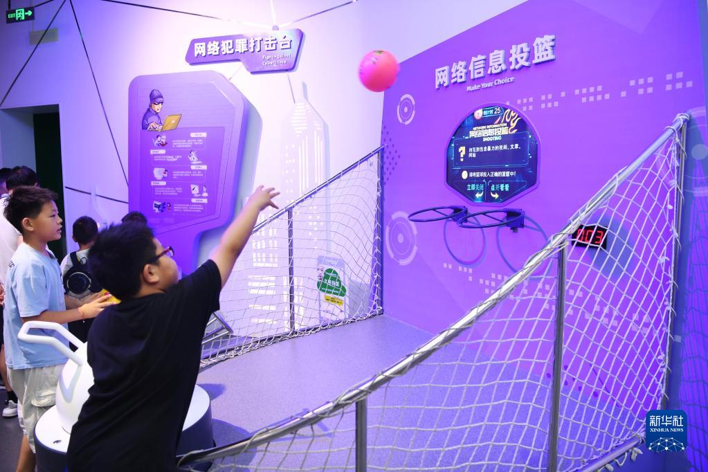 6月24日,小朋友在位于河南省鄭州市高新區的網絡安全科技館參觀體驗。
