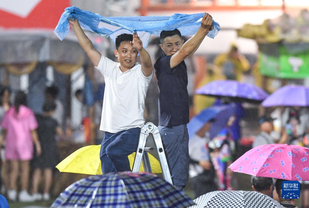 6月23日,觀眾冒雨觀看球賽。