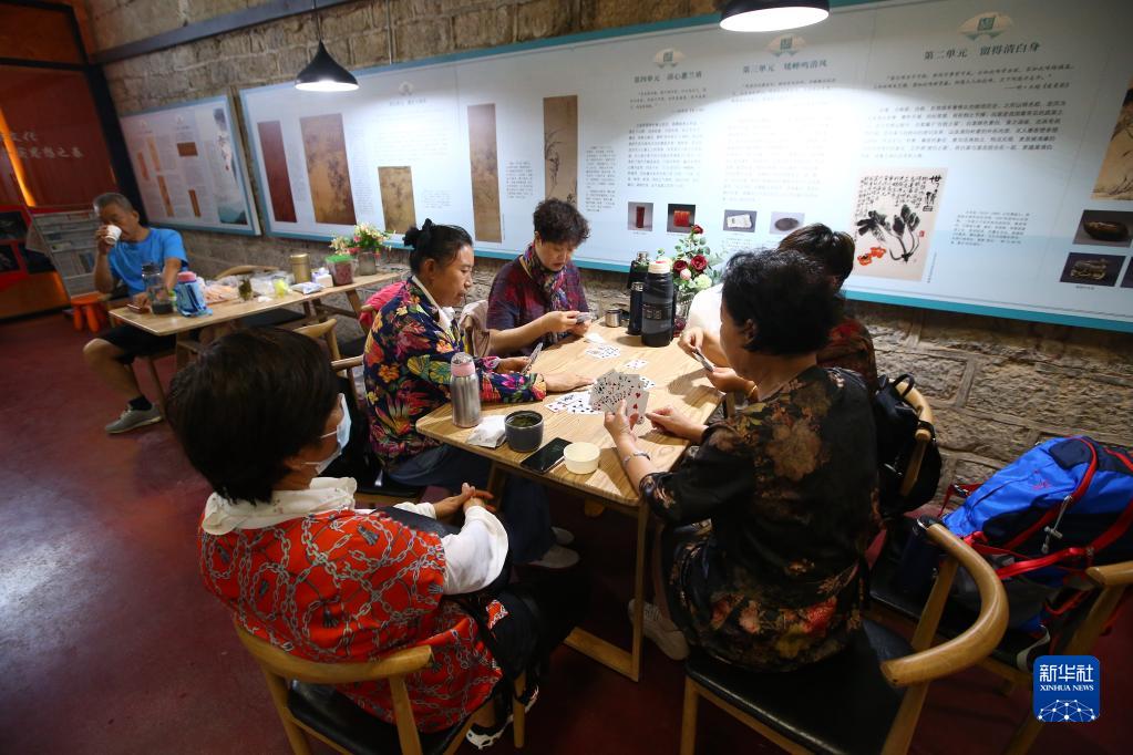 6月24日,市民在濟南市佛慧山人防工程納涼點休閑娛樂。