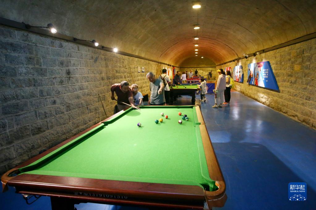 6月24日,市民在濟南市佛慧山人防工程納涼點打臺球。