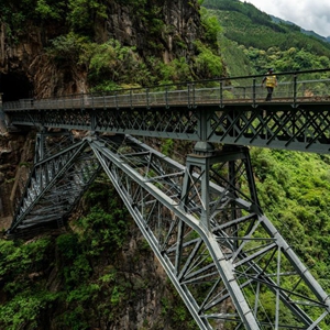 滇越鐵路是云南省第一條鐵路,米軌火車已在這條鐵路上穿行百余年。在滇越鐵路屏邊縣段,有一座標志性的“人字橋”,在懸崖峭壁間挺立百余年。