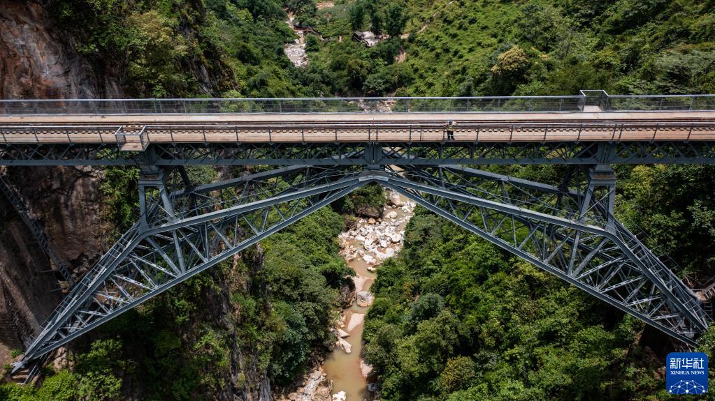 滇越鐵路是云南省第一條鐵路,米軌火車已在這條鐵路上穿行百余年。在滇越鐵路屏邊縣段,有一座標志性的“人字橋”,在懸崖峭壁間挺立百余年。