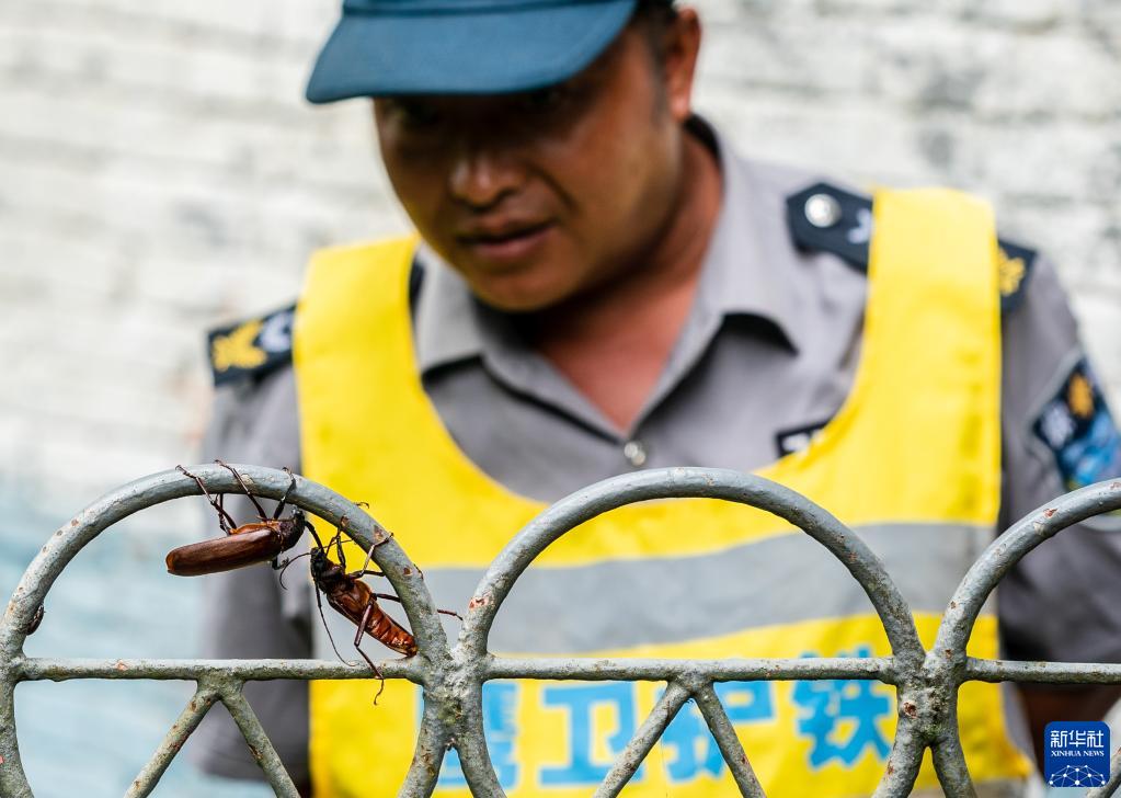 6月20日,落在欄桿上的兩只昆蟲吸引了楊有光的目光。