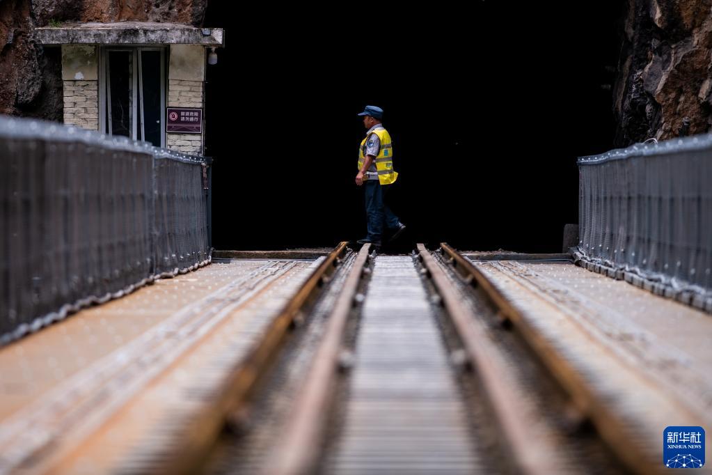 穿上工作服,拿著手電筒,穿行在隧道和橋梁間,這是楊有光再熟悉不過的工作內容?;疖囻偨洝叭俗謽颉鼻昂?,須從兩個隧道穿過。為保障行車安全,楊有光不僅要檢查橋面狀況,還需要精準把握隧道內的情況。他要穿行在隧道內外,巡查大橋整體狀況,沿著陡峭的階梯走到橋下,察看零部件狀況?;疖囻倎頃r,楊有光站在自己約3平米的值班室門口跨立候車,目視火車駛過“人字橋”,并將通過時間記錄下來。