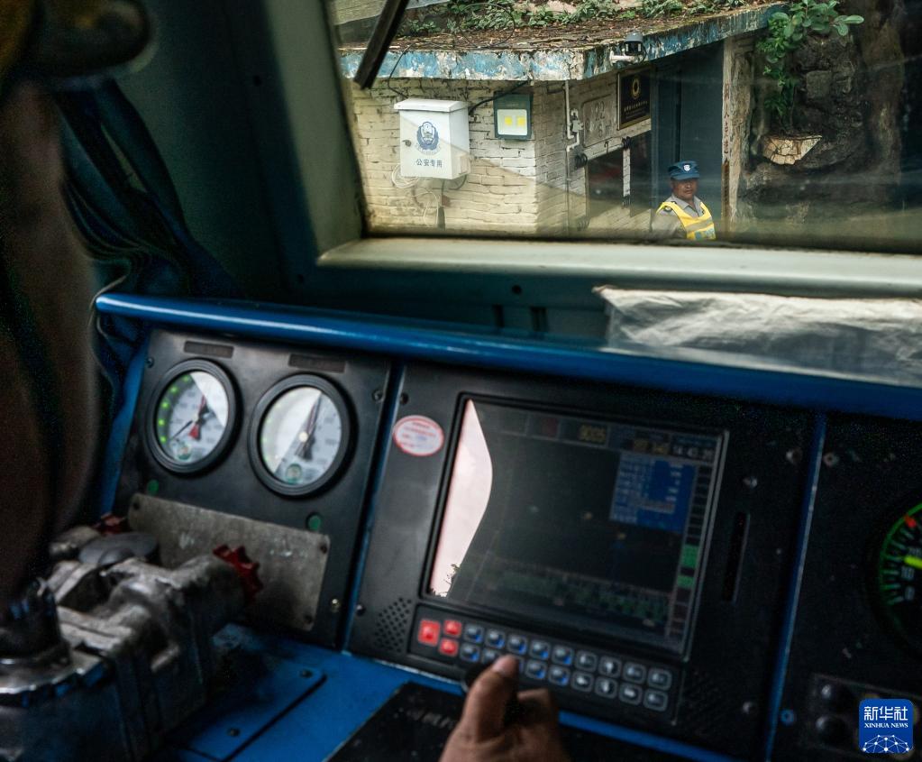 穿上工作服,拿著手電筒,穿行在隧道和橋梁間,這是楊有光再熟悉不過的工作內容?;疖囻偨洝叭俗謽颉鼻昂?,須從兩個隧道穿過。為保障行車安全,楊有光不僅要檢查橋面狀況,還需要精準把握隧道內的情況。他要穿行在隧道內外,巡查大橋整體狀況,沿著陡峭的階梯走到橋下,察看零部件狀況?;疖囻倎頃r,楊有光站在自己約3平米的值班室門口跨立候車,目視火車駛過“人字橋”,并將通過時間記錄下來。