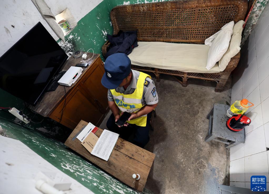穿上工作服,拿著手電筒,穿行在隧道和橋梁間,這是楊有光再熟悉不過的工作內容?;疖囻偨洝叭俗謽颉鼻昂?,須從兩個隧道穿過。為保障行車安全,楊有光不僅要檢查橋面狀況,還需要精準把握隧道內的情況。他要穿行在隧道內外,巡查大橋整體狀況,沿著陡峭的階梯走到橋下,察看零部件狀況?;疖囻倎頃r,楊有光站在自己約3平米的值班室門口跨立候車,目視火車駛過“人字橋”,并將通過時間記錄下來。