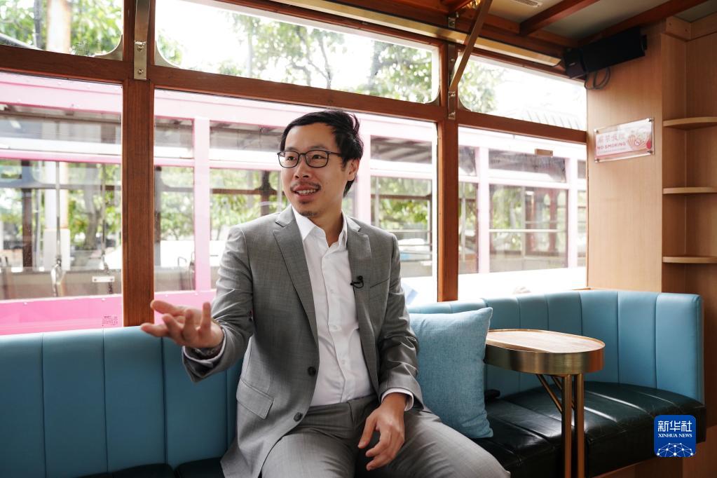香港電車市場商務及品牌總監張永恒在香港接受新華社記者專訪(5月3日攝)。