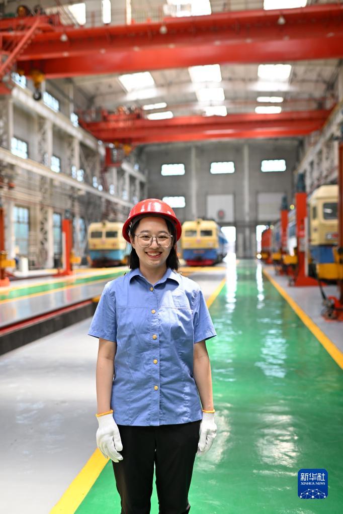 天車司機王孟媛在檢修車間(6月15日攝)。