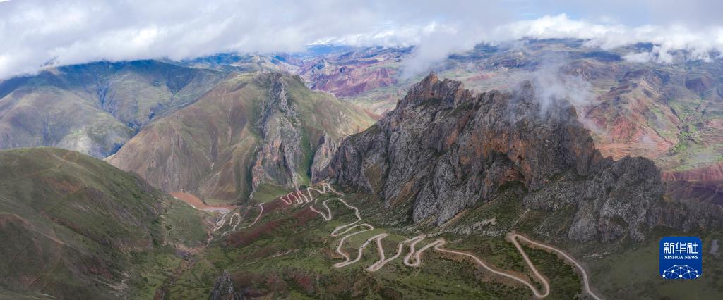 6月17日在國道317線昌都段丁青縣附近拍攝的鄉村公路景觀(無人機照片)。