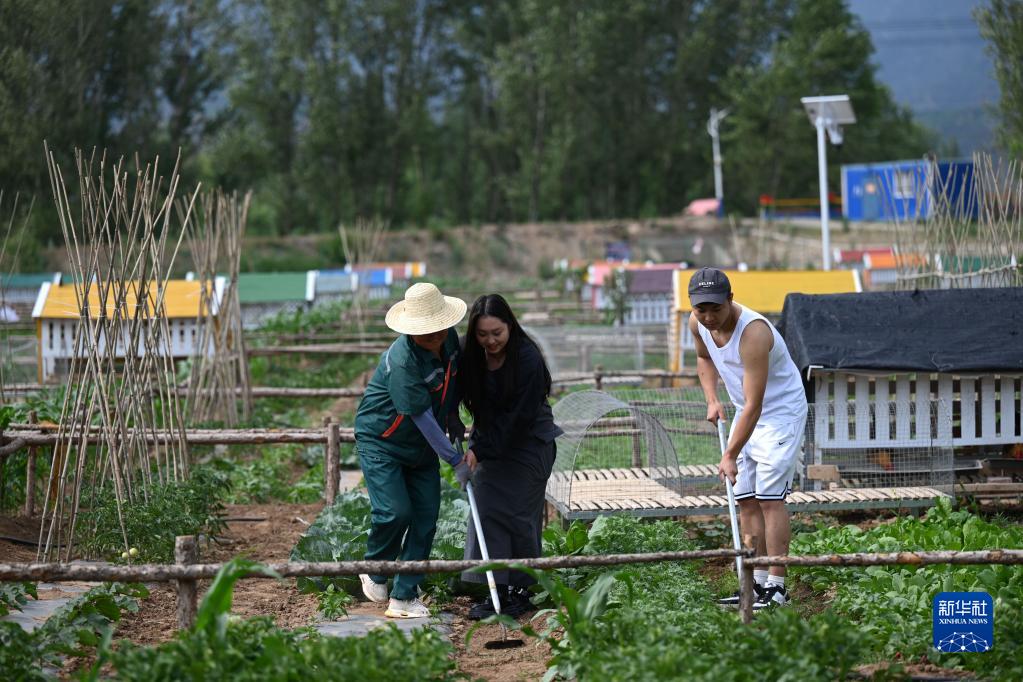 6月25日,在隆化縣苔山鎮三道營村一家“共享農場”,市民在工作人員的指導下勞作。