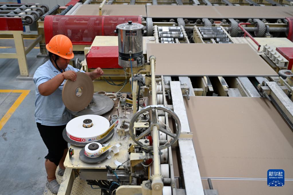 6月25日,工人在隆化縣泰山石膏承德有限公司生產車間忙碌。