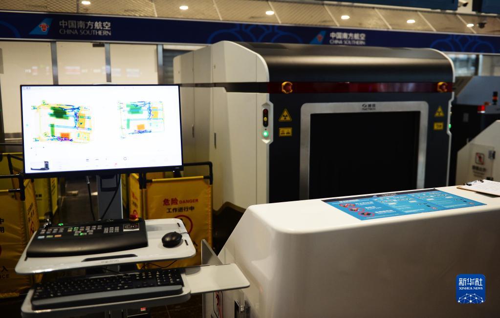 這是6月25日在美蘭國際機場拍攝的已安裝完畢的國內航班申報柜臺托運物品查驗設備。