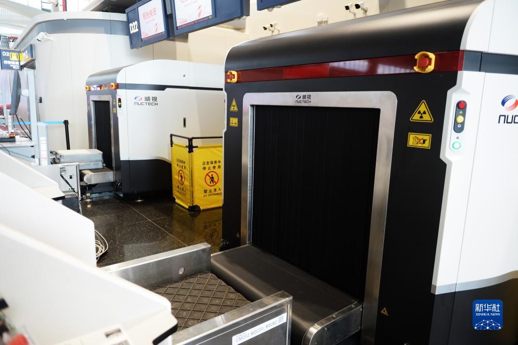 這是6月25日在美蘭國際機場拍攝的已安裝完畢的國內航班申報柜臺托運物品查驗設備。