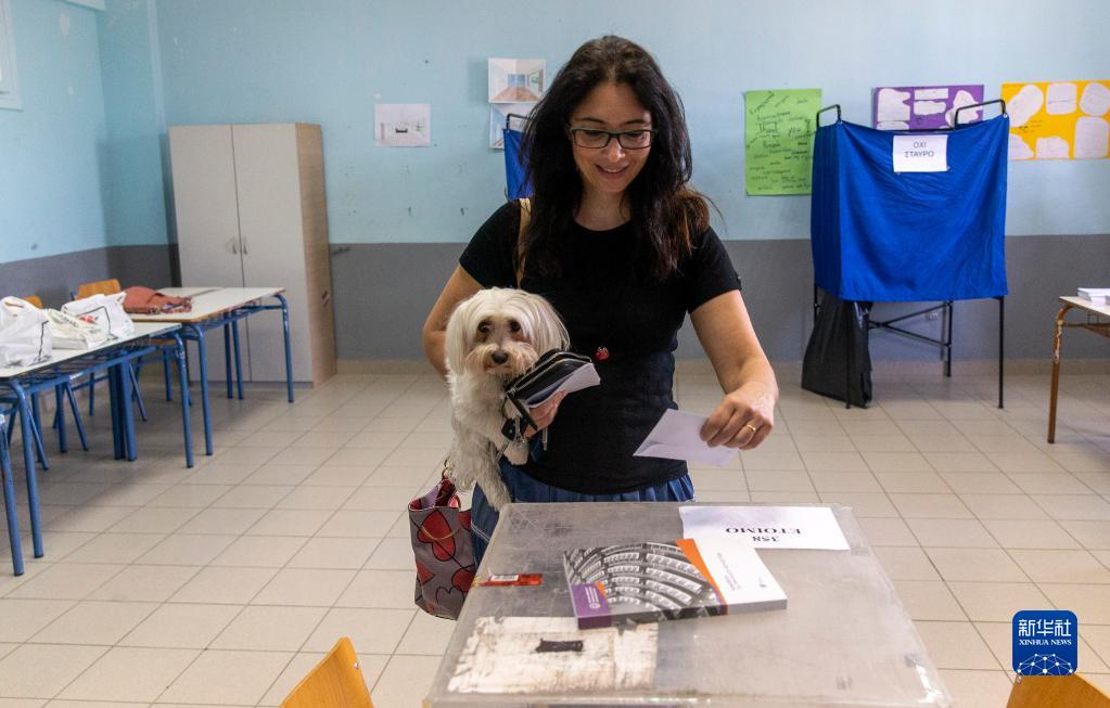 6月25日,一名女子在希臘雅典一處投票進行投票。