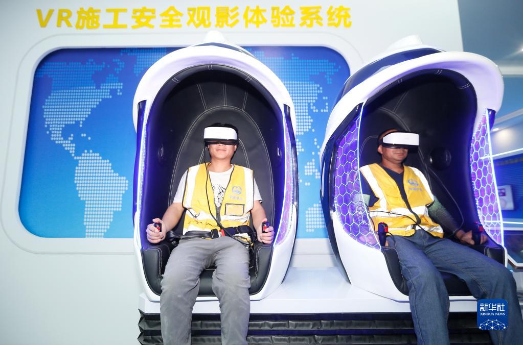 6月25日,中鐵建工第二建設有限公司即墨項目部的建筑工人在進行VR施工安全觀影體驗。