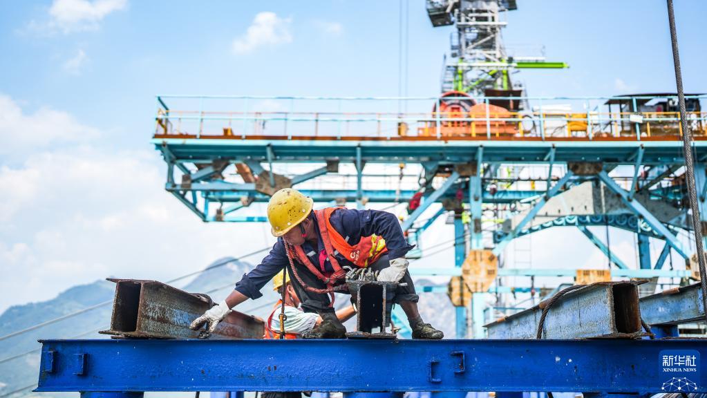 貴州公路集團工人在納晴高速牂牁江大橋進行施工(6月25日攝)。