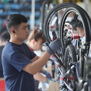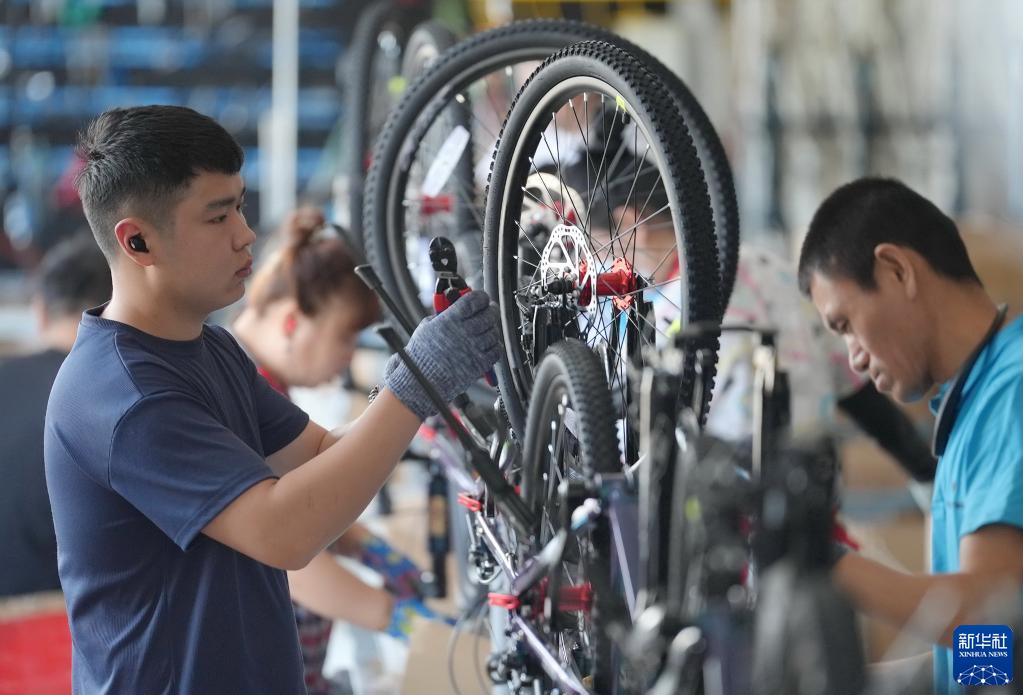 6月25日,工人在唐山市蘆臺經濟開發區一家自行車企業的生產車間工作。