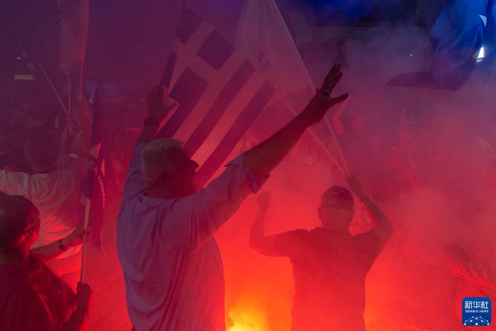 6月25日,希臘新民主黨支持者在雅典慶祝該黨派贏得選舉。
