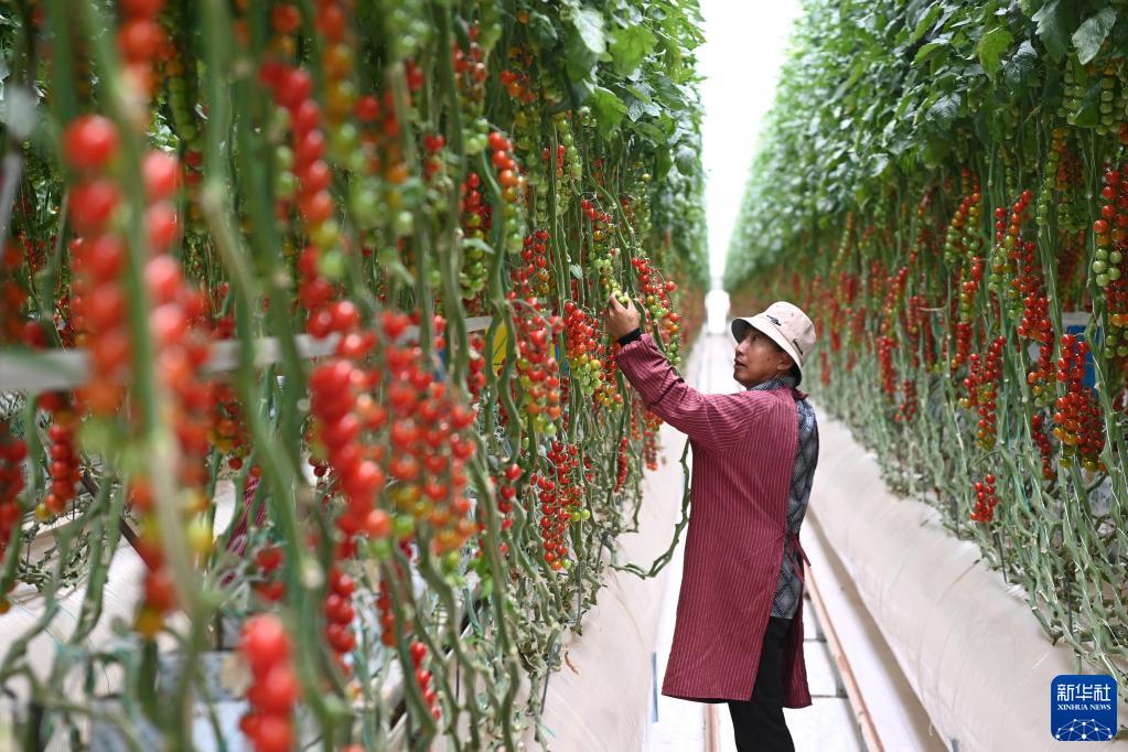 近年來,地處祁連山北麓、河西走廊中段的甘肅省張掖市民樂縣充分挖掘戈壁農業資源潛力,大力發展節水農業、旱作農業、戈壁生態農業,建設百億級現代絲路寒旱農業智能溫室產業園。截至目前,該縣已建成投用50萬平方米的高標準智能玻璃溫室,種植的串收番茄銷往我國華東、華南等區域。