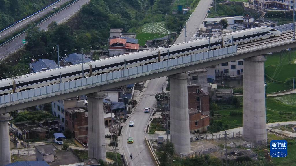 6月26日,55311次試驗列車經過貴州龍里縣境內的麻芝鋪特大橋。