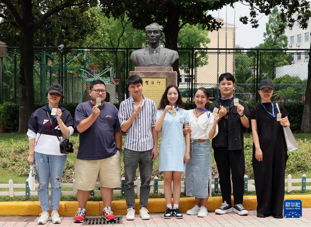 6月23日,在上音附中的賀淥汀像前,來自云南的鄉村音樂教師們合影留念。