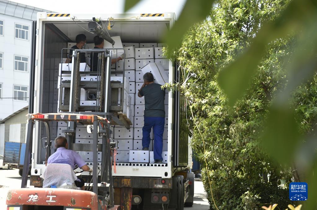 6月26日,工人在河南省安陽市內黃縣興隆農產品有限公司將辣椒制品裝車準備外銷。