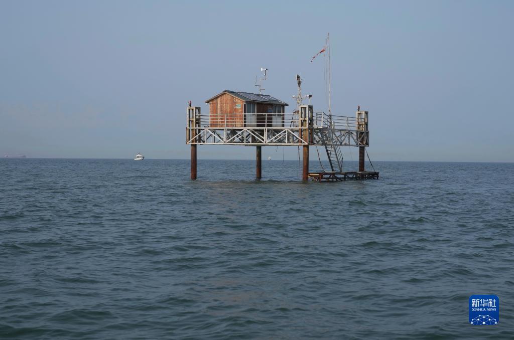 這是唐山祥云灣海洋牧場貝藻礁區生態監測平臺(2021年5月12日攝)。