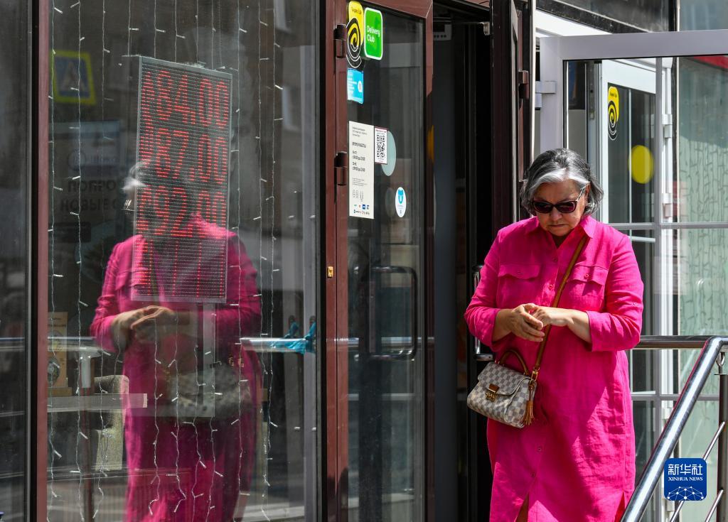 6月26日,在俄羅斯首都莫斯科,行人經過一家外匯兌換點。