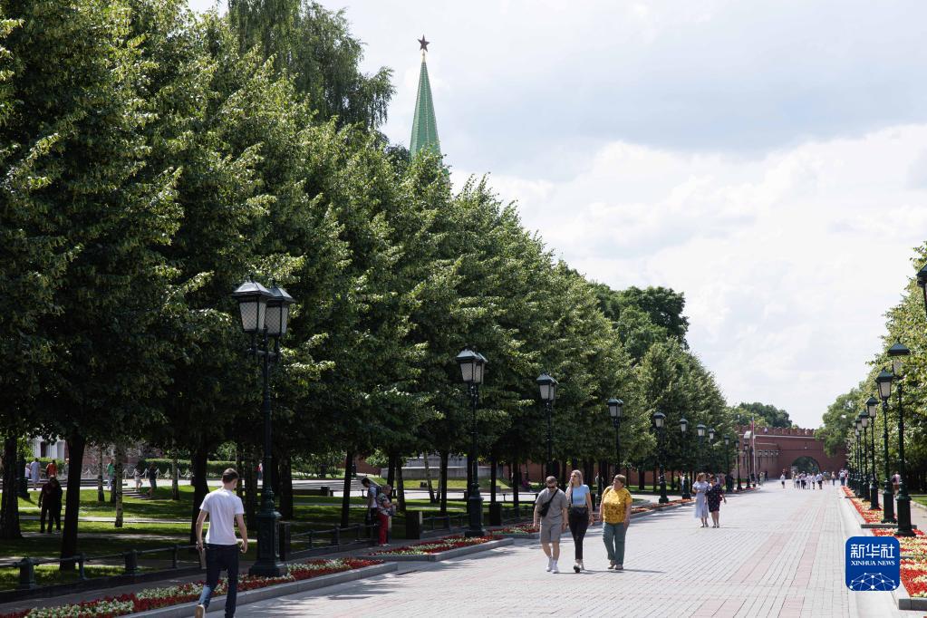 6月26日,在俄羅斯首都莫斯科,人們在紅場附近游覽。