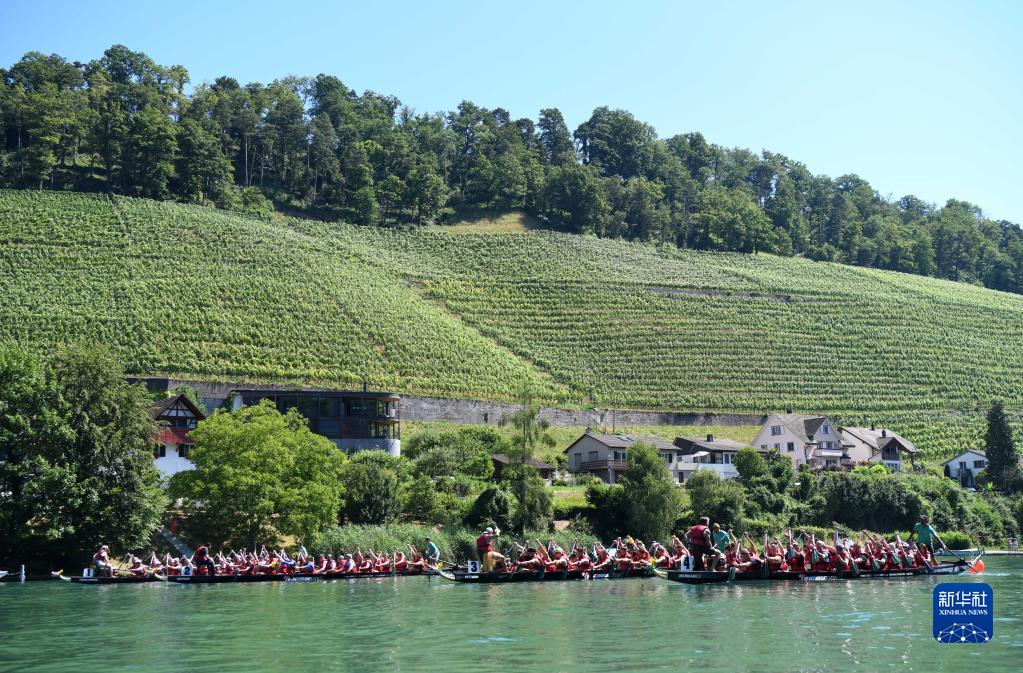 6月25日,在瑞士埃格利紹,人們參加賽龍舟活動。