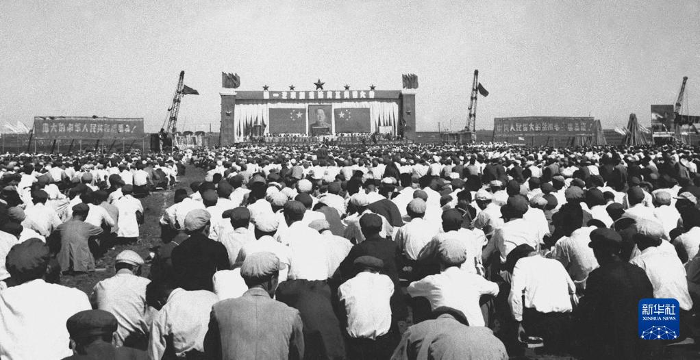 1953年7月15日,中國第一座汽車廠——第一汽車制造廠在吉林省長春市奠基,新中國汽車工業開始起步。這是一汽奠基典禮大會會場(資料照片)。