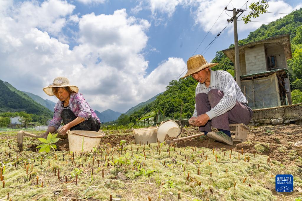 6月26日,在重慶市巫溪縣蘭英鄉西安村,村民方孝三(右)在采挖貝母。