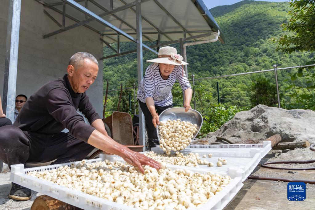 6月26日,在重慶市巫溪縣蘭英鄉西安村,村民將清洗干凈的貝母攤開晾干。