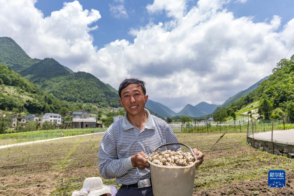 6月26日,在重慶市巫溪縣蘭英鄉西安村,村民方孝三在展示剛剛采挖的貝母。