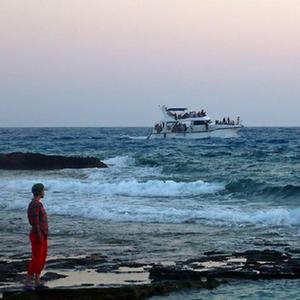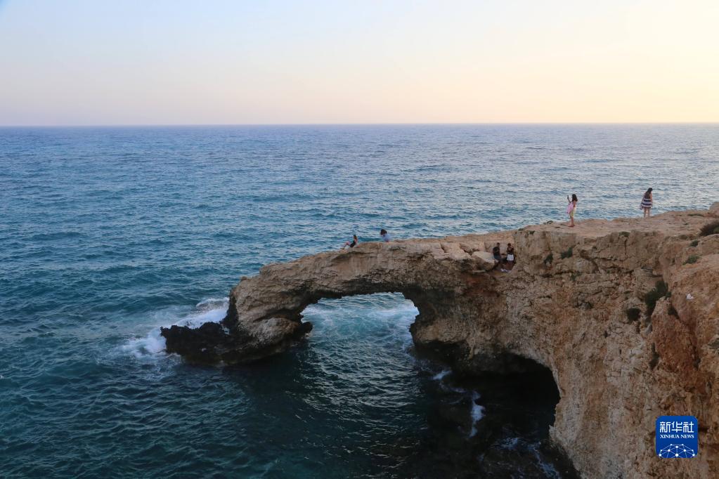 在塞浦路斯圣納帕東部海蝕洞景區,一處海岸邊海水侵蝕后形成的天然石橋“愛之橋”因美麗的景色成為游客打卡地。