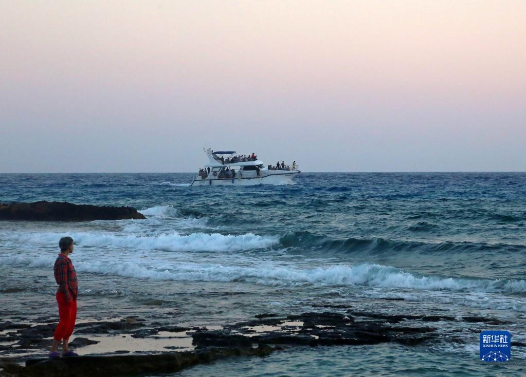 6月26日,一名男子站在塞浦路斯圣納帕“愛之橋”附近的海濱。