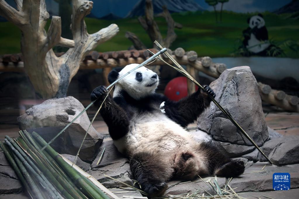 近日,遼寧地區持續高溫,在飼養員的精心照料下,鞍山動物園里的5歲大熊貓“剛剛”一邊吹著空調降溫,一邊享用新鮮竹子、水果、胡蘿卜、蜂蜜等,清涼度夏。
