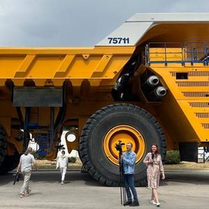 這是6月26日在白俄羅斯明斯克州若基諾市的白俄羅斯汽車制造廠拍攝的大型自卸車。