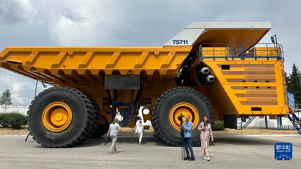 6月26日在白俄羅斯明斯克州若基諾市的白俄羅斯汽車制造廠拍攝的大型自卸車。