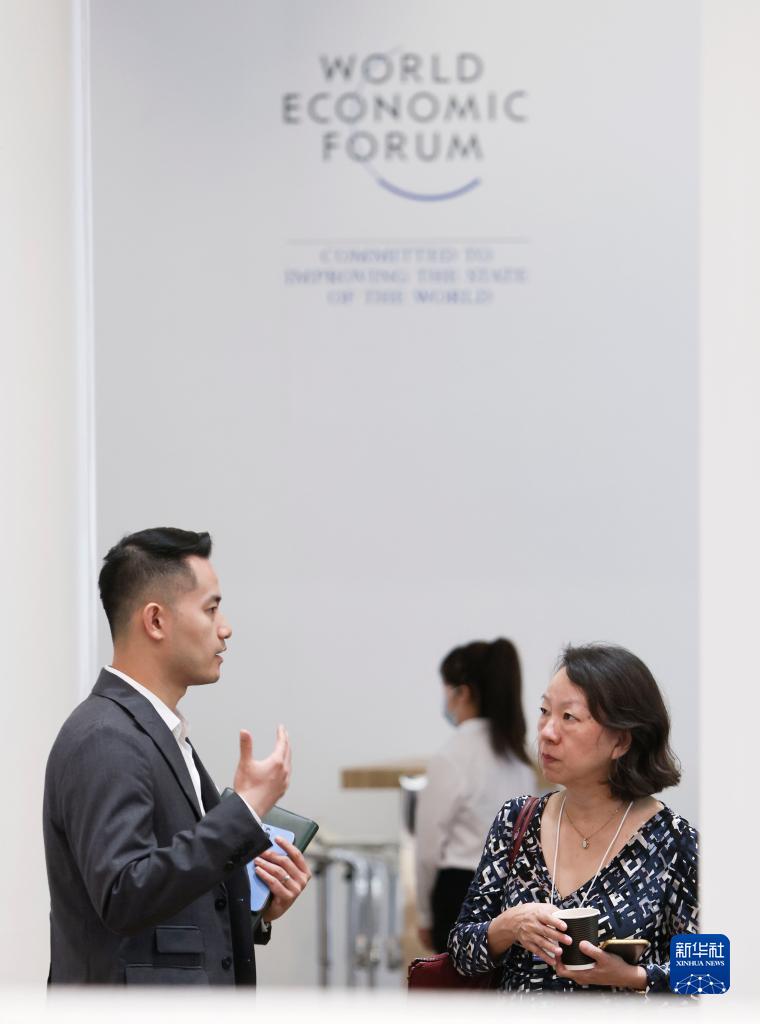 6月27日,與會者在第十四屆夏季達沃斯論壇現場交流互動。
