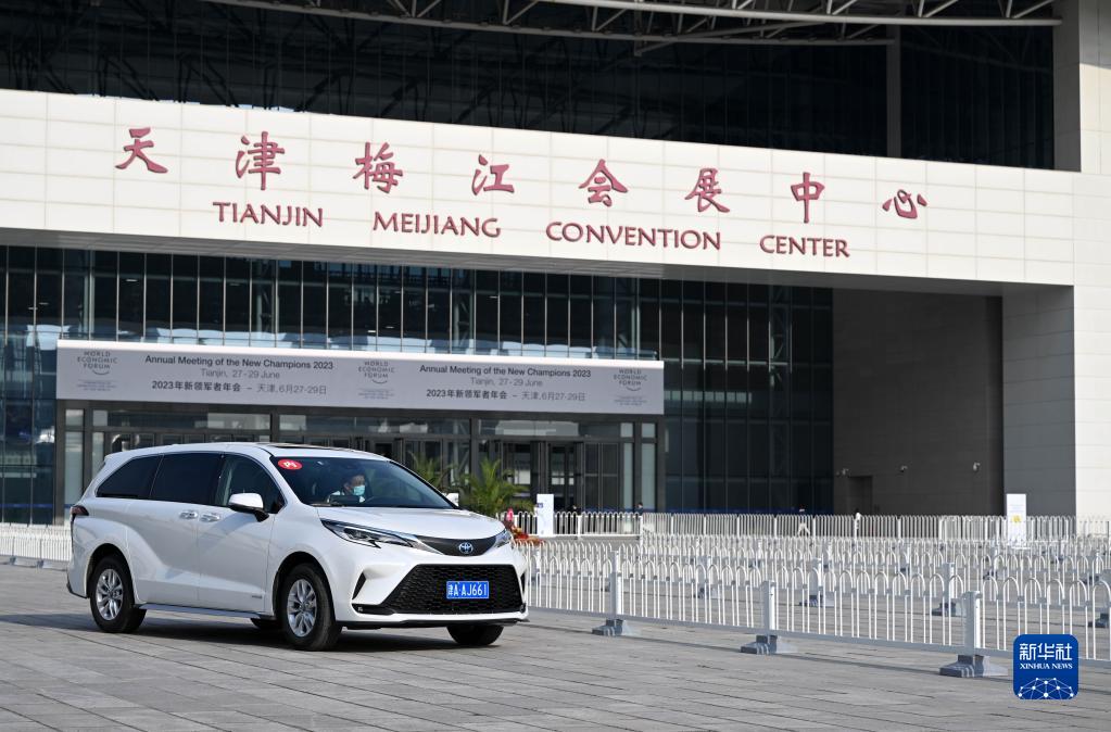 6月27日,一輛嘉賓用車從第十四屆夏季達沃斯論壇會場前經過。