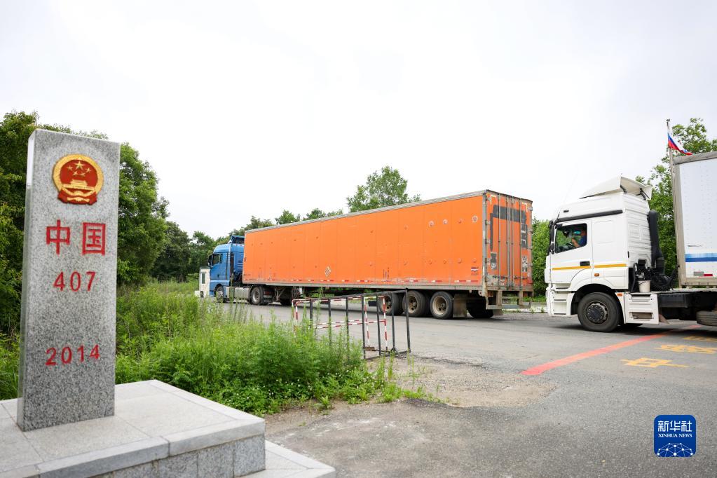 6月26日,貨車在琿春公路口岸駛離中俄邊境。