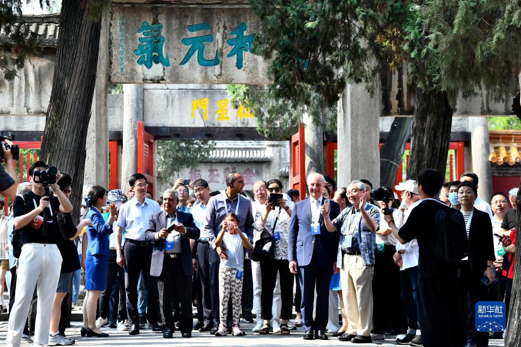 6月27日,參加世界互聯網大會數字文明尼山對話的中外與會嘉賓和游客在曲阜孔廟參觀。
